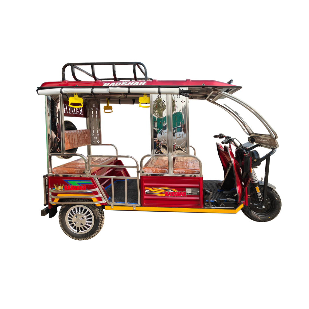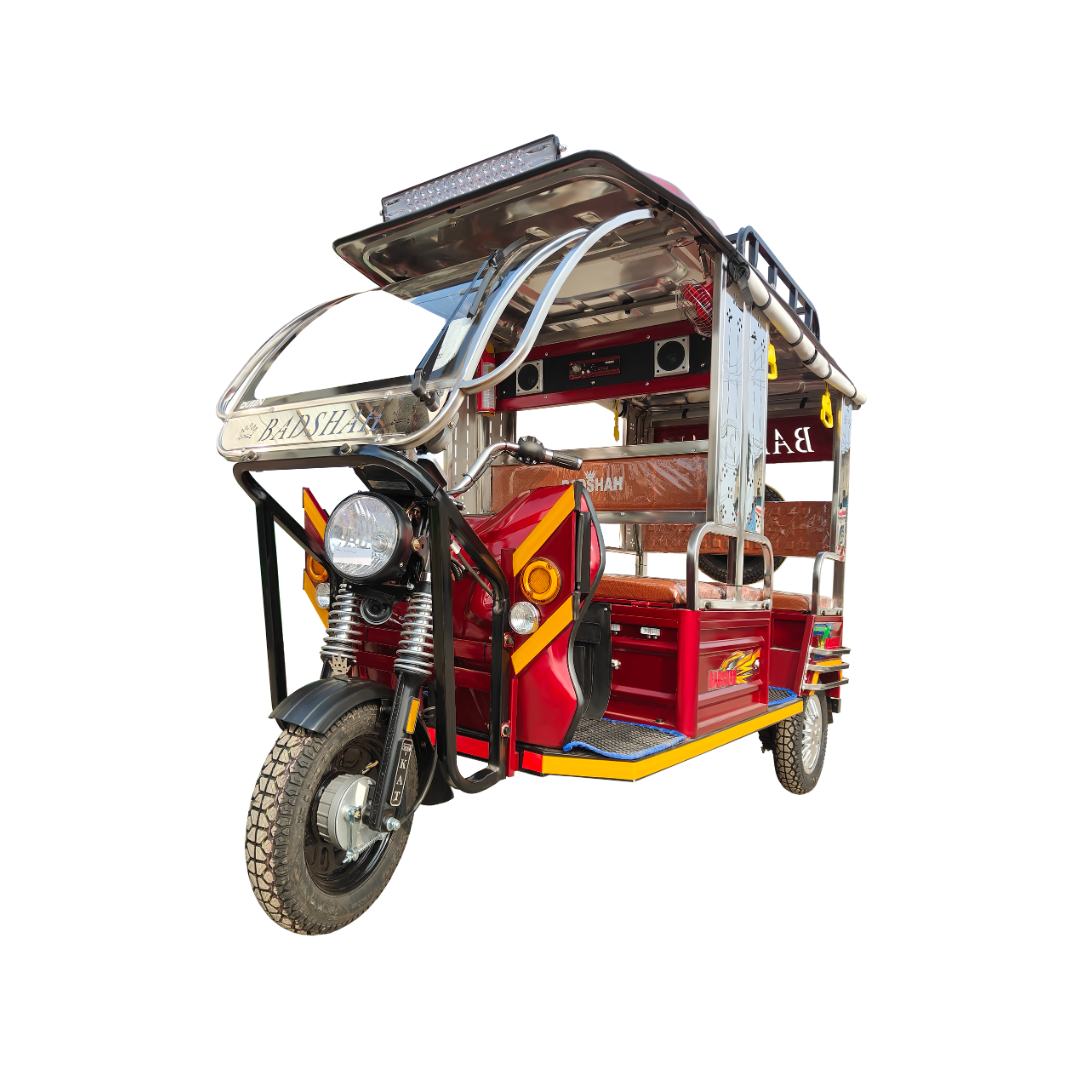 At BADSHAH, we are committed to leading the future of mobility with intelligent technology. Our e-rickshaws come fully equipped with smart battery management, energy-efficient motors, and fast-charging features – all with a goal of less downtime and higher productivity.